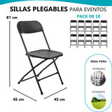 · Incluye: 10 Sillas Plegables Color Negro