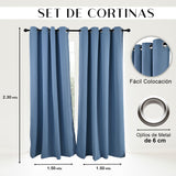 Cortinas Blackout Premium Labba, Azul Acero, 3x2.3 metros, 2 paneles