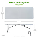 MESA PLEGABLE PARA EVENTOS BLANCA TIPO PORTAFOLIO 1.8m