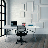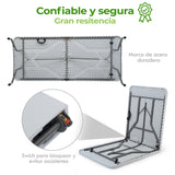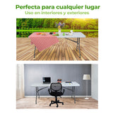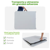 Mesa plegable con diseño práctico para facilitar su transporte y resguardo.